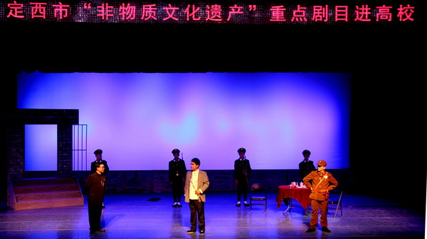 2015年6月1日晚19:00,艺术中专部邀请定西市百花演艺有限公司“非物质文化遗产重点保护剧目”展演活动在南校区实验剧场举行。党委书记史百战和人事处、组织部、财务处、科技处、校办、音乐舞蹈公司、中专部领导和师生共500人共同观看了晚会。