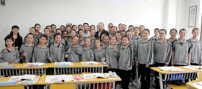 小课间,史百战书记一行又来到2014级舞蹈班英语课的教室。史书记一走进教师,孩子们便纷纷起立,用英语向史书记问好,史书记饶有兴趣地与孩子们进行英语对话。“史爷爷,我们刚学了用英语描述外貌,我能描述一下您吗?”听到孩子们的邀请,史书记欣然应允。在与孩子们愉快交流后,史书记肯定了孩子们的英语学习,勉励孩子们要继续努力,好好学习,天天向上。最后,史书记为孩子们发放了节日礼品,送上了节日问候,与孩子们合影留念。