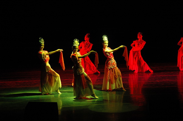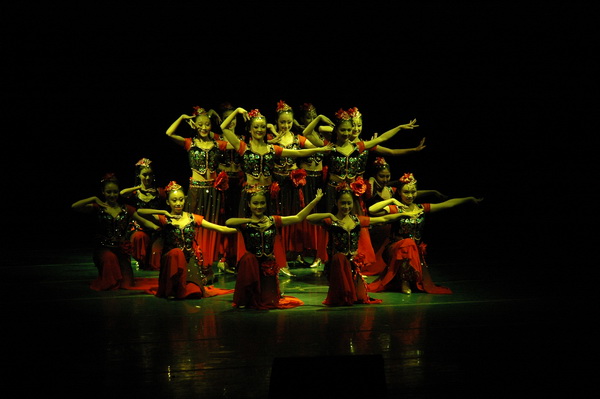 演出在《技术技巧组合》中拉开了帷幕。2012级毕业生以舞蹈专场的形式演绎了《一抹红》、《走山梁》、《青山绿水》、《喜鹊喳喳喳》、等创编舞蹈,同时公司的敦煌舞《欢腾伎乐》等节目也登台亮相,受到了全场观众的热烈欢迎。整场演出组织有序、节目内容丰富多彩,既展示了2012级毕业生的学习成果,也反映出舞蹈教研室精诚团结、敬业奉献的精神风貌和过硬的专业素质。