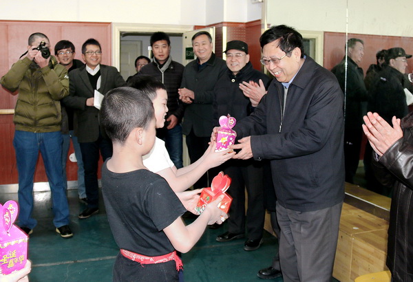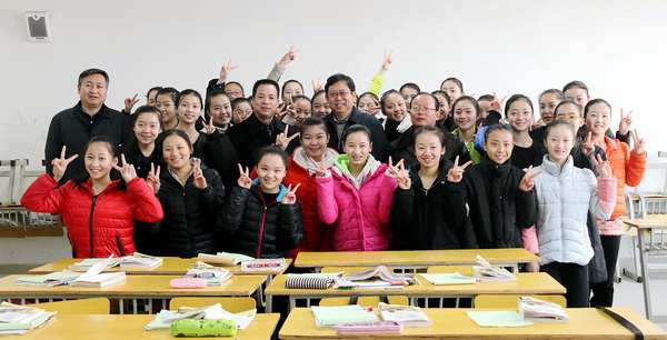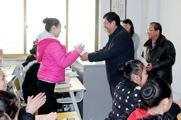 汪建华董事长一行先后来到舞蹈、戏曲功厅和文化课教室,每到一处孩子们都高兴地给汪董事长送来新年的问候,并向董事长赠送了自己制作的新年贺卡和小礼物。汪董事长细心聆听了授课老师对班级情况的介绍,对同学们在一年中取得的学习成果表示祝贺,对老师们的辛勤付出予以点赞,并叮嘱同学们:在学好专业课的基础上,一定要强化对文化课的学习,只有学好文化课才能让将来的艺术之路走的更高、更顺畅,最后,汪董事长为孩子们发放了节日礼品,送上了节日问候,与孩子们合影留念。