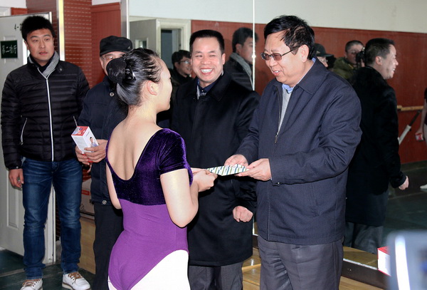 在新年到来之际,12月30日上午,董事长汪建华一行来到艺术中专部看望慰问了部分13、14、15级戏曲、舞蹈专业员工。