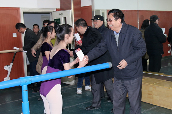 陪同汪建华董事长慰问的还有校办主任薛志忠、工会主席路鹏及团委、艺术中专部相关负责人。