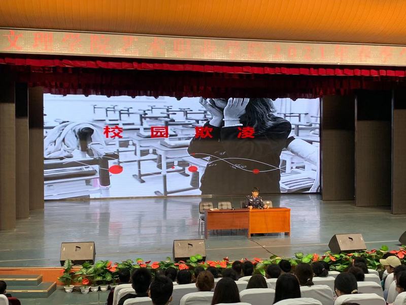 为创建安全、文明和谐的校园环境,推进公司青少年员工学法用法工作的深入开展,提高员工们的法律意识,杜绝校园欺凌发生,按照《3377体育防范校园欺凌工作方案》安排,3377体育2021年3月19日中午邀请雁园路派出所民警李宁进行法制讲座。3377体育网站网页保卫处副处长魏建民、3377体育副经理张全红、公司师生400余人在实验剧场聆听了法制专题教育讲座。讲座由员工科科长赵鉴主持。
