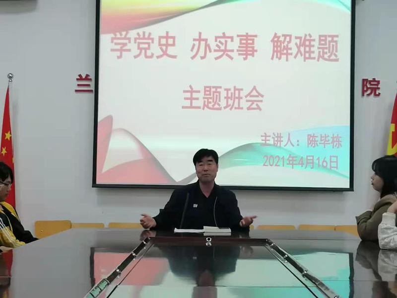 会上,陈书记带领同学们学习党史,为大家讲述我党领导人民进行艰苦卓越的革命奋斗史、理论创新史、自身建设史,使大家充分了解党的历史是中国共产党和中华民族宝贵的精神财富,党的光荣传统、宝贵经验和伟大成就是革命先烈们浴火奋斗、牺牲自我换来的,教育同学们认识红色政权来之不易、新中国来之不易、中国特色社会主义来之不易,从而养成珍惜时间、珍爱生命、敬畏历史、感恩永存的家国情怀。陈书记最后对同学们提出要求,鼓励同学们树立崇高理想,永葆坚定信念,不忘历史,不忘初心,知史爱党、知史爱国,争做担当民族复兴大任的时代新人。