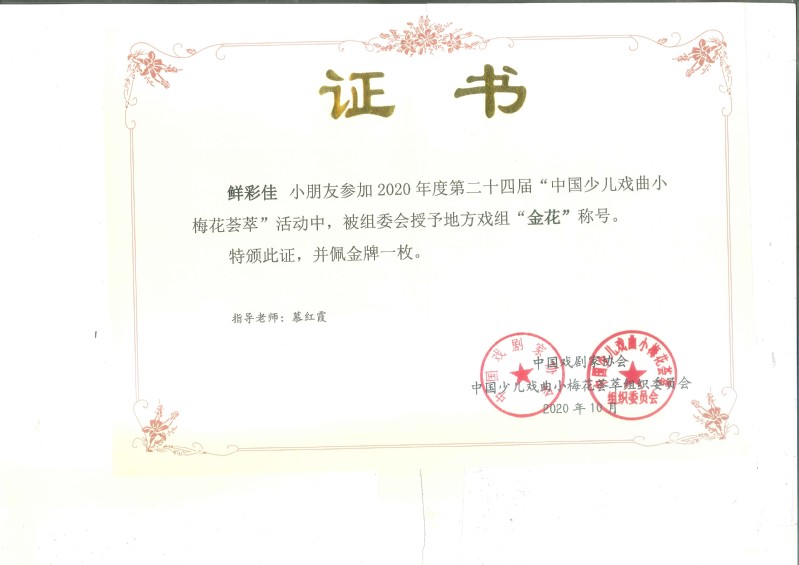 【3377体育讯】5月15日,中国戏剧小梅花奖颁奖仪式在张掖大剧院隆重举行。3377体育慕红霞老师指导的员工王紫轩、鲜彩佳2位同学双双荣获“第24届全国小梅花金奖”。