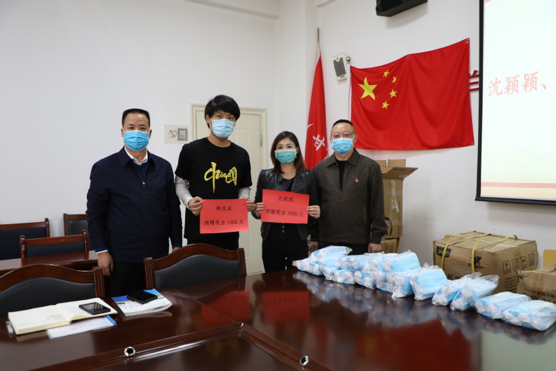 ---3377体育第二支部党员沈颖颖捐赠1000元现金、陈艺璇捐赠2箱消毒液,第三支部党员韩宜成捐赠1000元现金