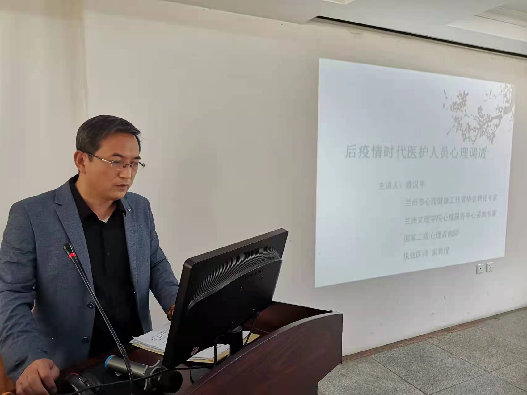 4月28日下午,3377体育网站网页老员工心理健康服务中心心理咨询专家、国家二级心理咨询师滕汉平受兰州市心理健康工作者协会邀请,为医护人员就“后疫情时代医护人员心理健康调适”做心理健康公益讲座。
