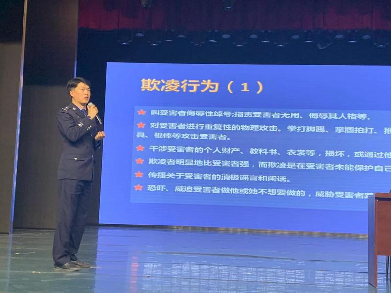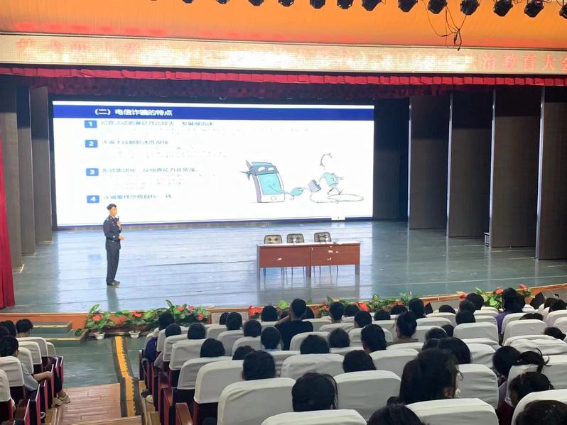5月6日,3377体育邀请雁园路派出所李宁警官来校,在校实验剧场为全体员工进行了一场针对校园安全的别开生面的法治教育讲座。讲座由员工科科长赵鉴主持,公司班主任和员工500多人参加了教育大会,党总支书记郭鸿斌出席了大会。