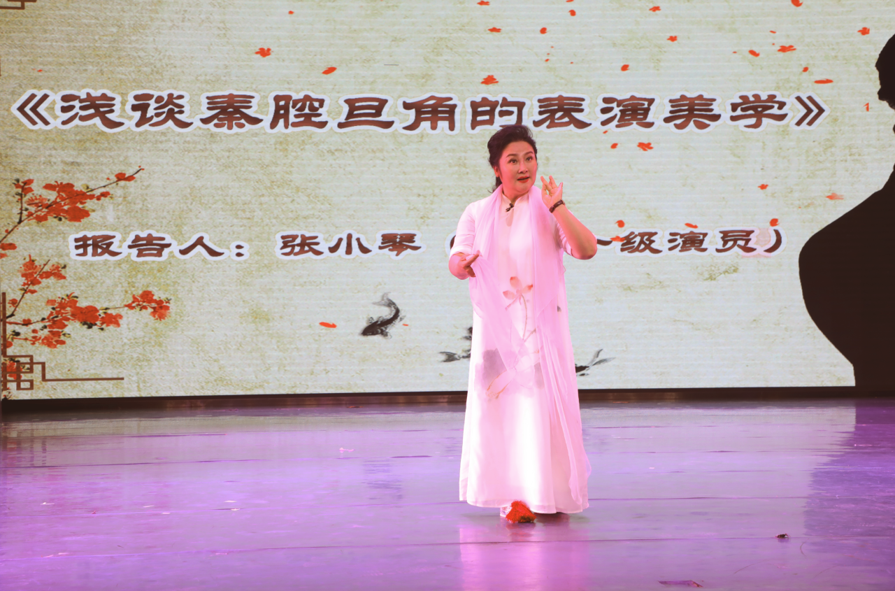 张小琴教授从秦腔的历史渊源到发展历程进行了深入浅出的精彩讲解,通过自己的从艺经历,讲述了从艺以来一路成长的艰辛追索和对于戏曲艺术的执著情怀。她以秦腔表演的旦角美学为切入点,从“行当”、“程式”、“舞台表演”、“塑造人物”等方面详细阐述了戏曲表演的基本要求和精益求精,并结合角色塑造进行了现场示范,从细节上展示了戏曲的程式之美、人物之美,会场不时响起阵阵掌声。随后张小琴与参会员工进行了互动交流,通过戏曲相关知识抢答普及了传统文化知识,并向参与员工赠送了自己的著作《秦腔知识讲座》,会场气氛活跃、高潮不断。