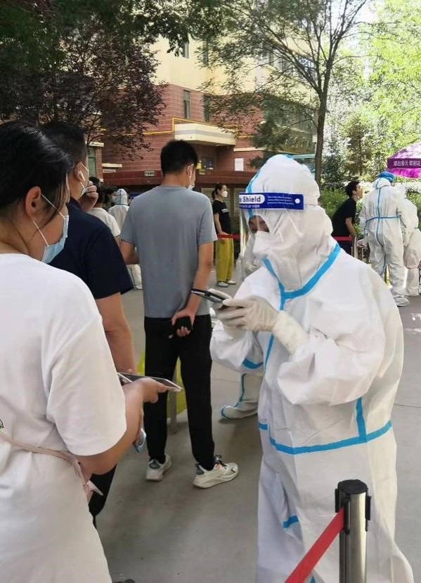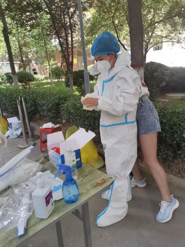 7月初肆虐的新冠疫情突然席卷(金城)兰州,打乱了整个城市的节奏,公司第二党支部书记齐莹同志所在的城关区是疫情爆发的重灾区,自711日兰州市全面封控以来,齐莹同志积极响应所在小区的号召,在经过公司党总支的同意后,加入八一阳光家园小区“临时党支部”,积极开展志愿服务,她帮助住户运送生活物品,穿着厚厚的防护服参加核酸检测扫码,一站就是几个小时,汗水湿透衣衫,有一阵额头留下的汗珠会迷住眼睛,脸颊旁被口罩系带勒出了深深的痕迹,双手被双层橡胶手套捂得蜕皮发白,可她却从不叫苦、叫累,默默地完成着一项又一项服务工作。