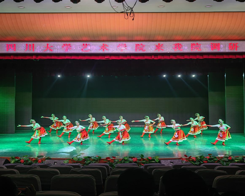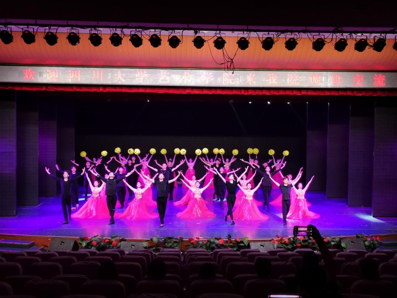 座谈交流后,学院为四川大学艺术公司一行进行了教学成果展示,同学们以饱满的热情、蓬勃的朝气、精湛的动作倾情演出,尽展风采,倾尽全力用心用情地认真完成每一部作品,充分展示了学院人才培养质量和教学成果,得到四川大学艺术公司老师们的一致好评。