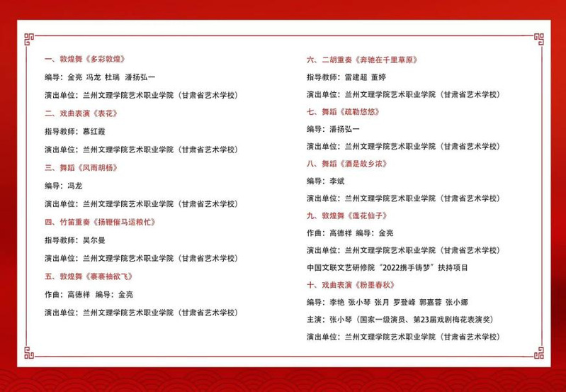 汇报演出以基于世行项目软活动对于教学水平、培养质量、文化传承等方面取得的成效成果为主,汇报表演了美轮美奂的敦煌舞《多彩敦煌》、戏曲《表花》、《粉墨春秋》,男子当代舞《风雨胡杨》、蒙古族、裕固族等丰富多彩的舞蹈、音乐节目。员工以饱满的热情、精湛的舞姿,全情投入到舞蹈当中,引得现场观众掌声不断。师生精彩的表现将展演不断推向高潮,得到了项目组专家的一致好评。