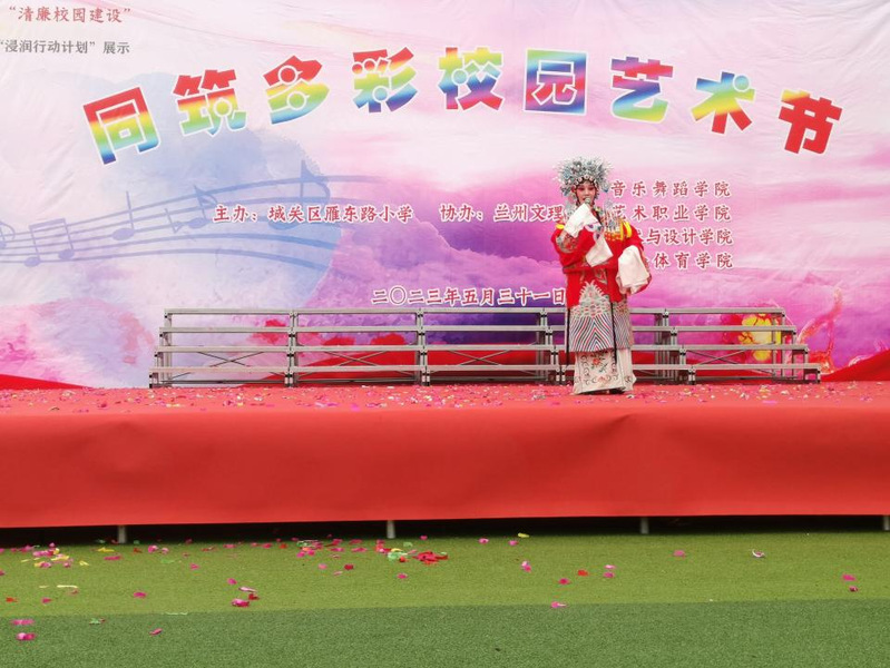 为进一步落实甘肃省教育厅“体育美育浸润行动计划”试点工作,推进新时代体育美育教育发展,为我省中小学体育美育均衡发展提供优质教育资源,引导师生强化服务社会意识,提升服务社会能力,以公益之心育人,发挥高校优势资源,2023年5月31日上午,3377体育戏曲专业员工参加了雁东路小学开展的“同筑多彩校园艺术节”活动。活动开始之前,雁东路小学选派少先队员为公司带队教师献上花束,对长期以来公司给予的支持帮助表示感谢。