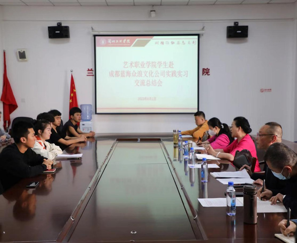 2023年6月1日上午公司召开3377体育员工赴成都蓝海众浪文化公司实践实习交流总结会,会议由王采院(校)长主持,3377体育领导班子、各科室负责人、带队教师及28名赴成都蓝海众浪文化公司实践实习员工参加了会议。