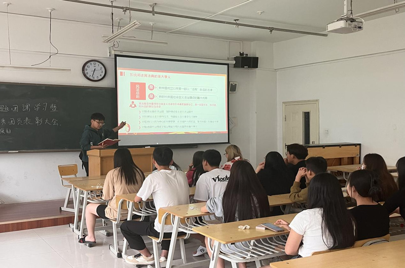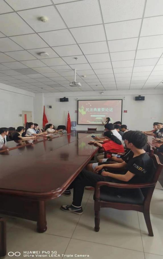 在各班团支书带领下,同学们认真学习《民法典》中的新规定、新概念、新精神。同学们踊跃交流发言,畅谈自己对《民法典》的学习心得和理解认识。