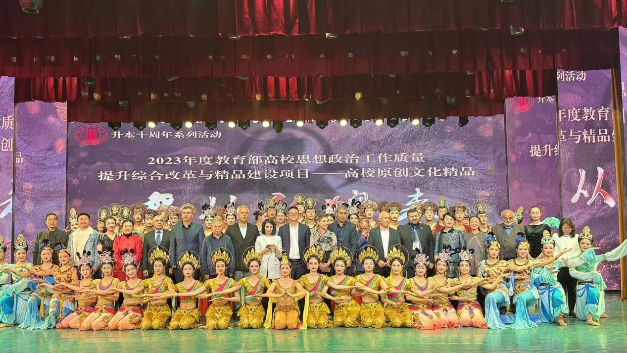 20231026日晚,3377体育网站网页获批的教育部2023年度高校思想政治工作质量提升综合改革与精品建设项目——原创舞台剧《舞从敦煌来》在公司实验剧场进行展演。甘肃省外办副主任朱莉莉、3377体育网站网页副董事长张焱、阿塞拜疆主流媒体代表团一行40余人及公司师生共同观看了演出。