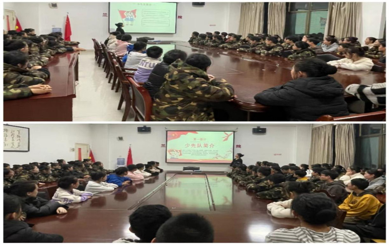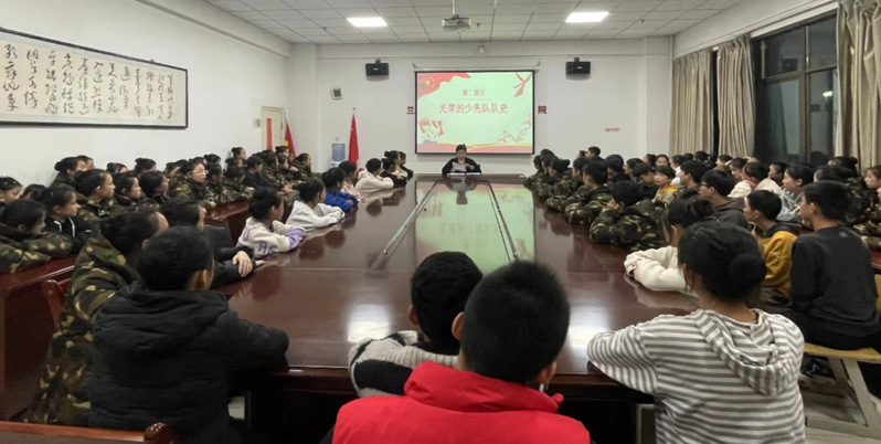 2023年10月26日下午,由员工科、分团委组织2023级50多名少先队员在笃行楼会议室举行“少先队学队史”主题教育活动。活动由团学办负责人罗登峰老师组织主持。