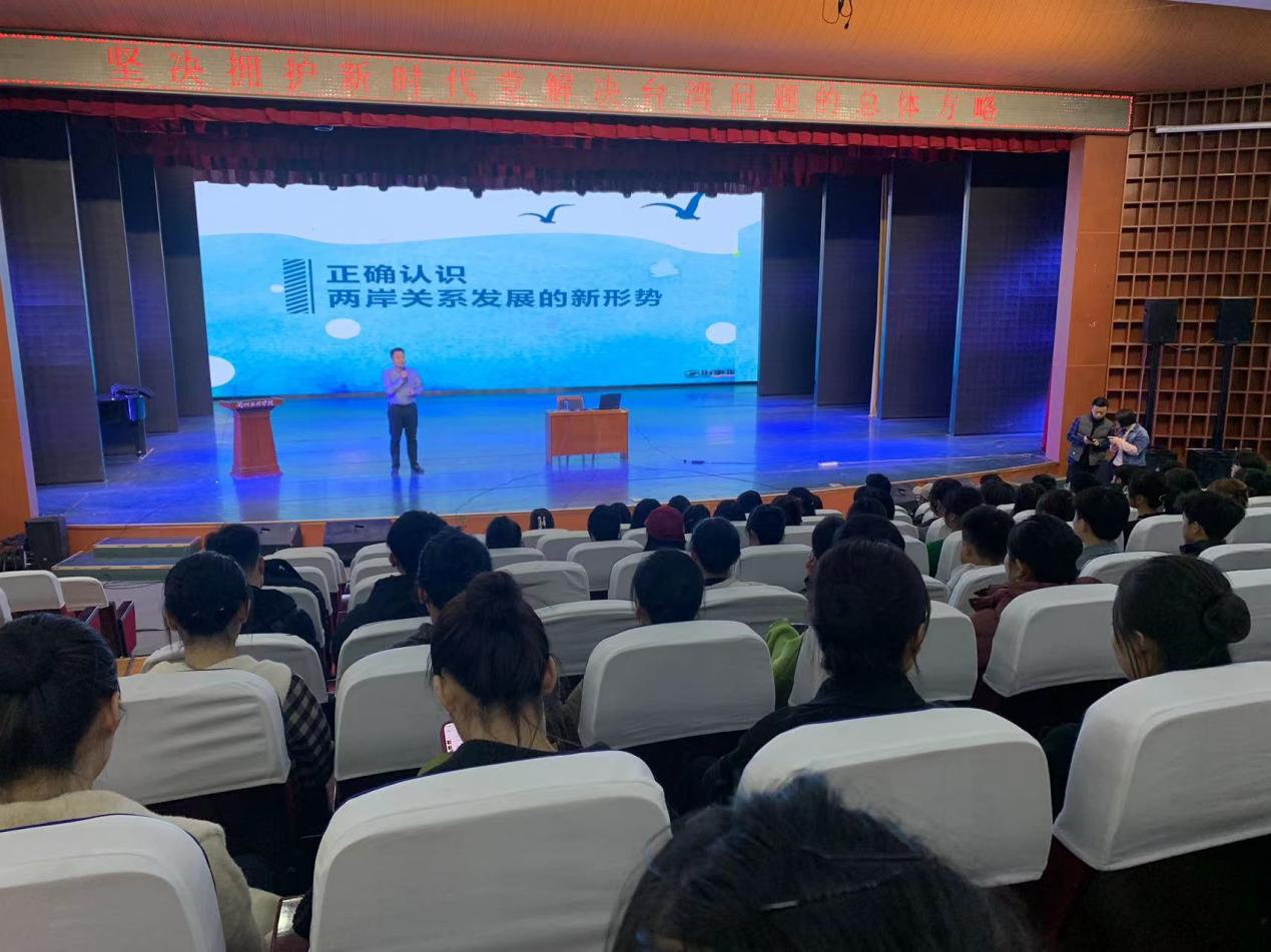 员工科工作人员和100多名同学聆听了梁老师的讲授。梁老师从两岸关系的复杂性到为实现祖国统一,我们应该怎么做讲授了一堂内涵丰富、深入浅出的形势与政策课。整个课程引导员工厚植爱国的情怀,培育爱国主义精神,教育员工做一个有理想、有抱负的爱国青年。