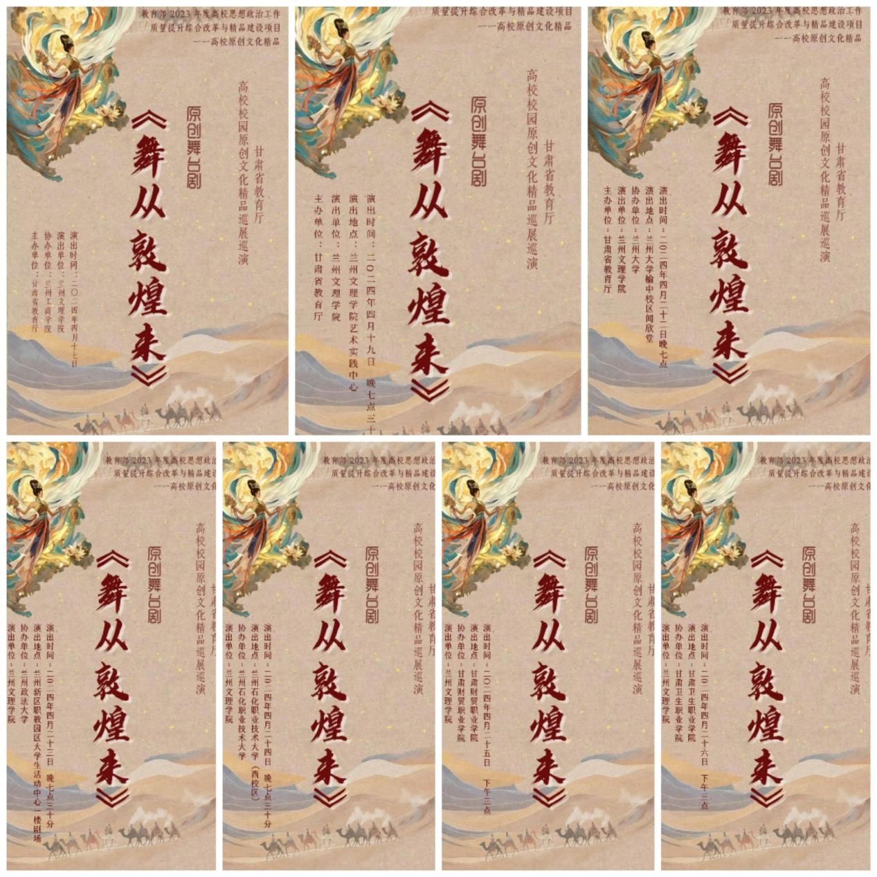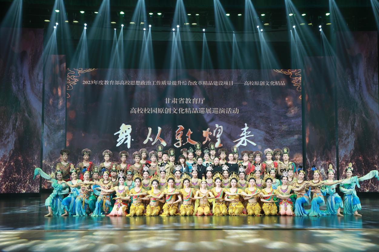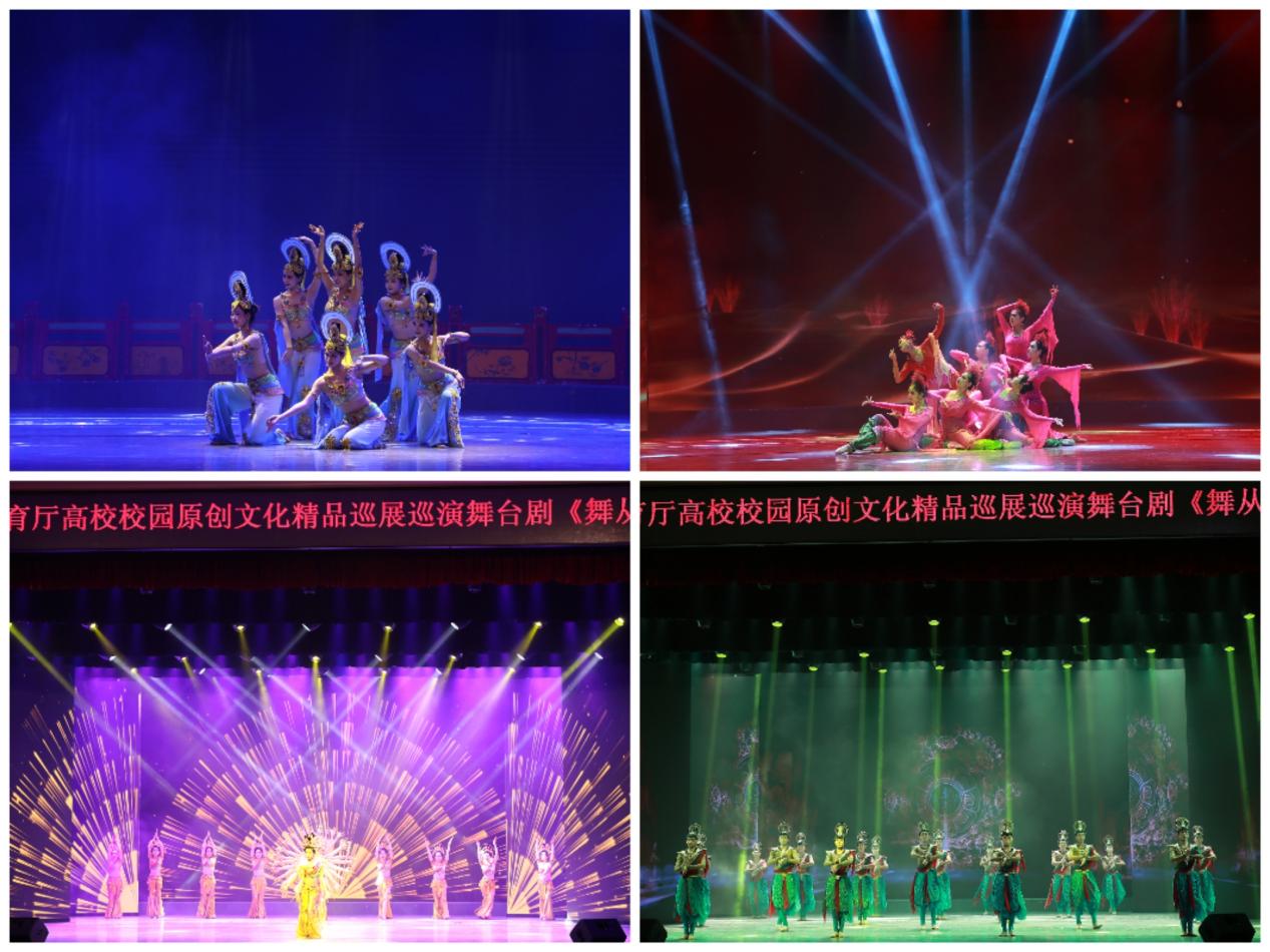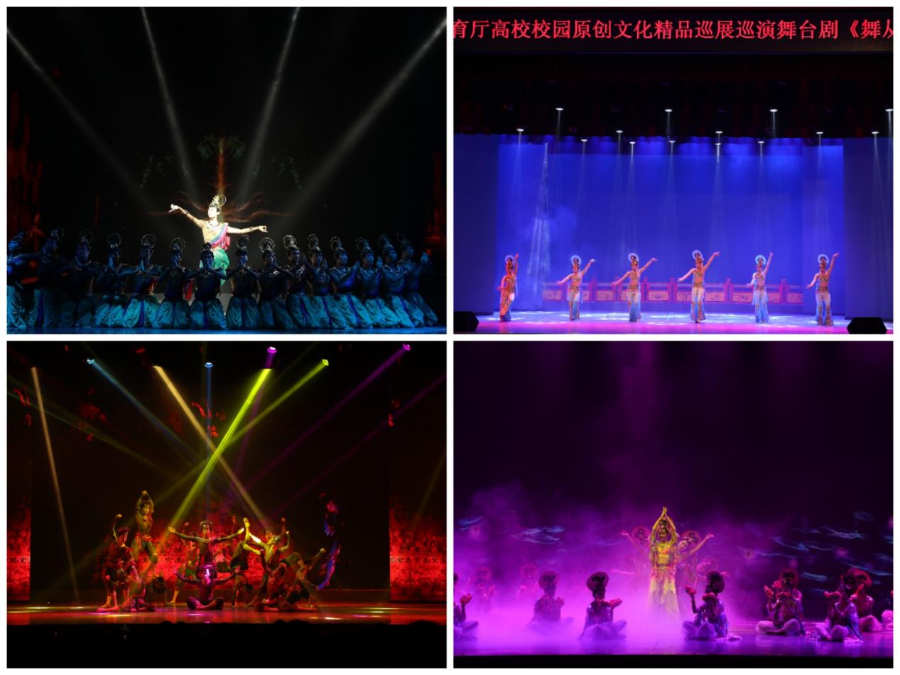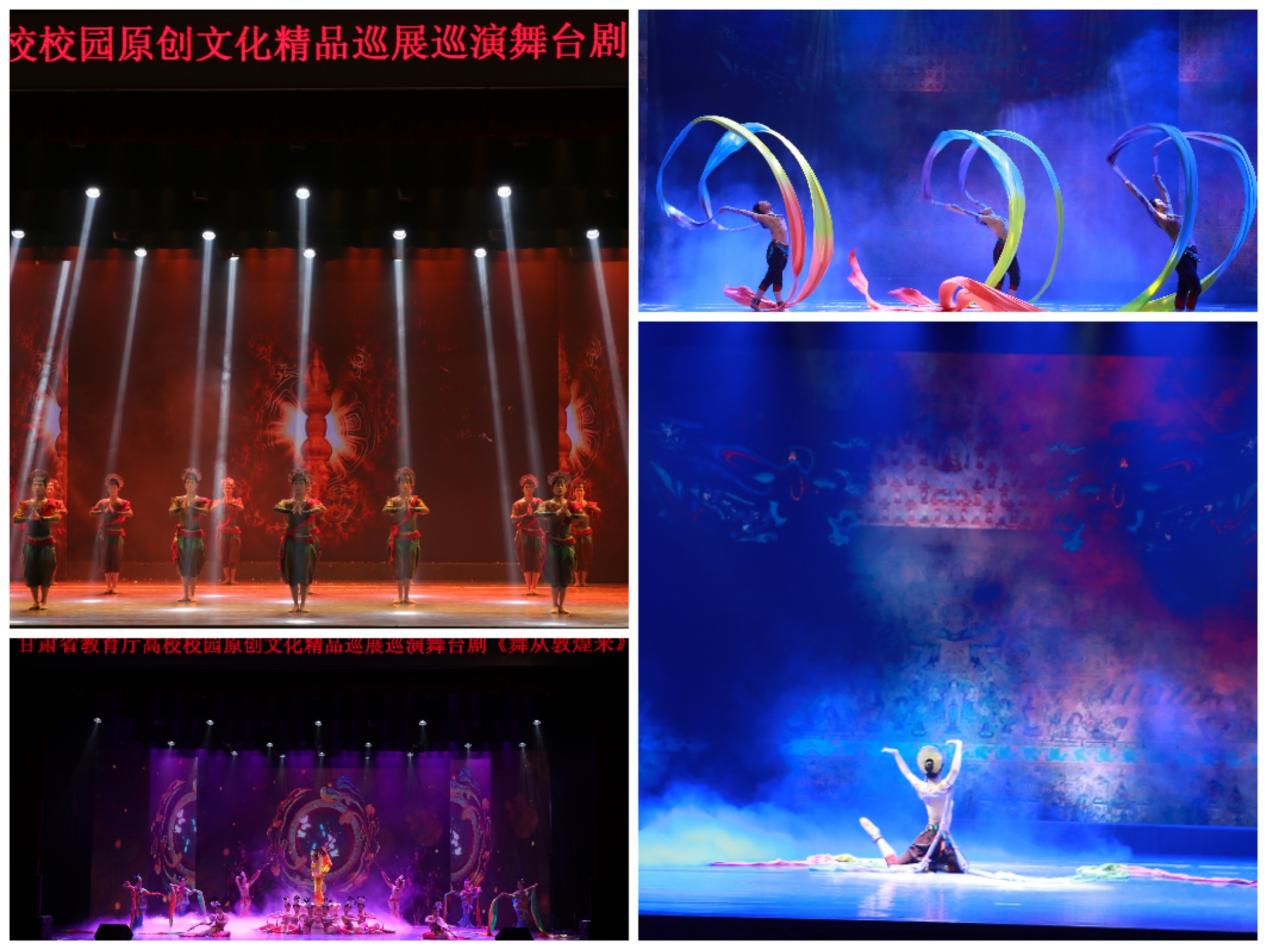 为推动各高校深入落实“时代新人铸魂工程”,根据《教育部办公厅关于开展高校校园原创文化精品巡展巡演的通知》精神和省教育厅安排,2024年4月17日—4月26日3377体育网站网页原创舞台剧《舞从敦煌来》分别在兰州工商公司、3377体育网站网页、兰州大学、兰州政法大学、兰州石化职业技术大学、甘肃财贸职业公司、甘肃卫生职业公司等七所高校展演。