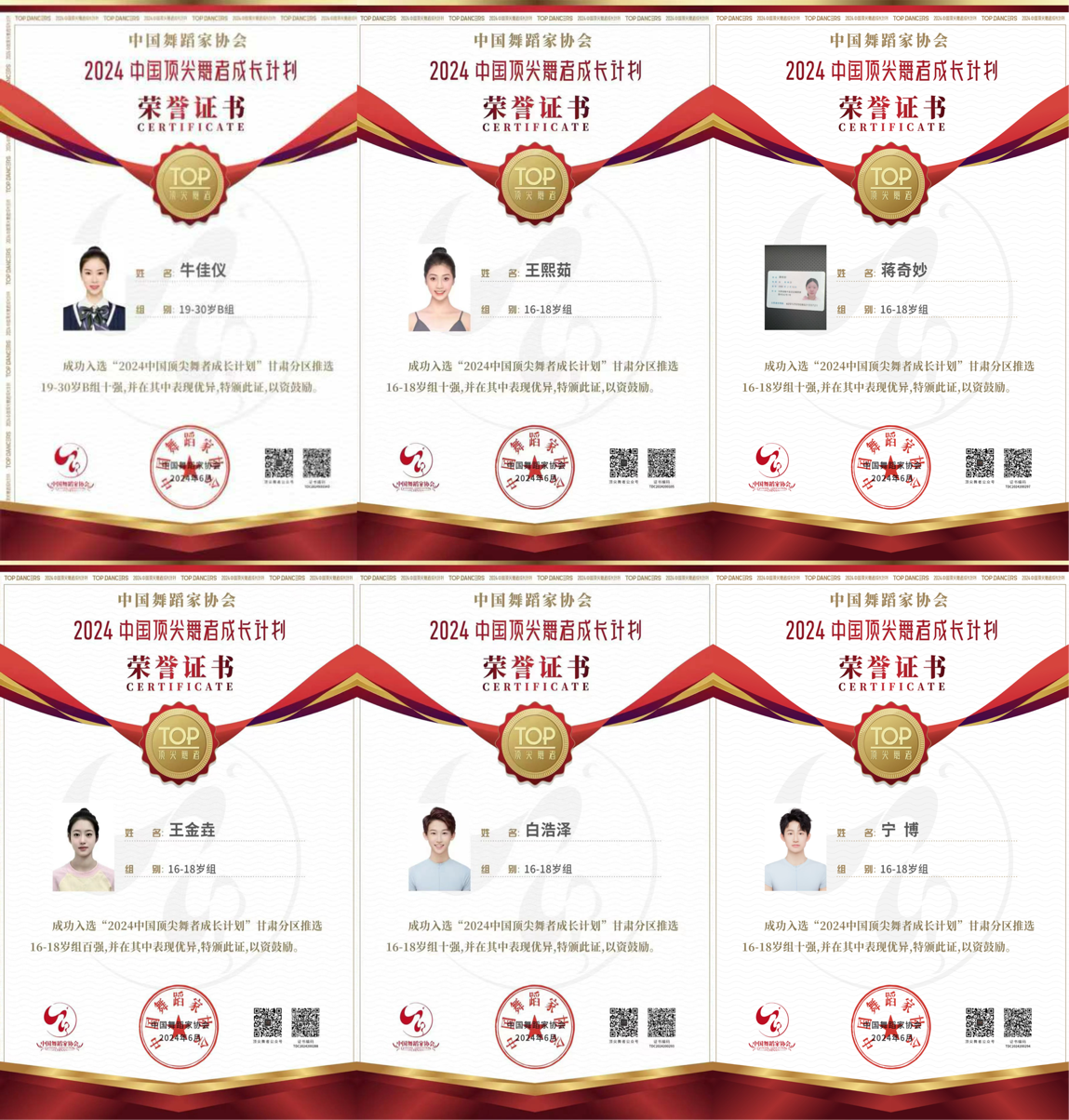 3377体育,舞蹈表演(敦煌舞方向)本科员工牛佳仪、王熙茹;中职员工王金垚、蒋奇妙、杨雨婷、白浩泽、宁博在中国舞蹈家协会主办的“中国顶尖舞者成长计划”活动“2024中国顶尖舞者奖”中表现卓越,取得甘肃前十的好成绩,并成功晋级至全国赛事。