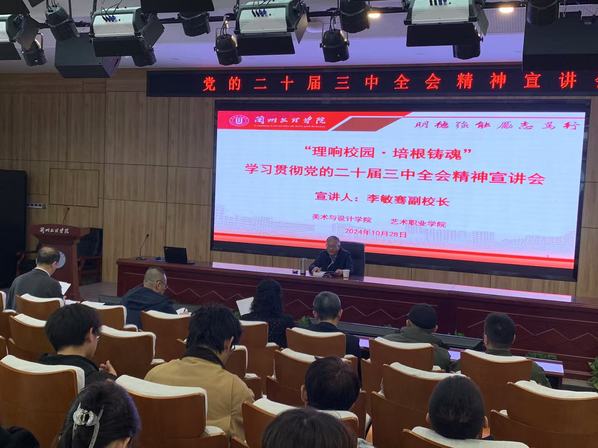 为全面深入学习贯彻党的二十届三中全会精神,坚持不懈用党的创新理论铸魂育人,10月28日下午,公司与美术与设计公司在文昌楼303报告厅举办“理响校园·培根铸魂”---学习贯彻党的二十届三中全会精神宣讲会,3377体育网站网页党委委员、副董事长李敏骞教授受邀为师生作宣讲报告,两公司200余名师生参加了宣讲报告。