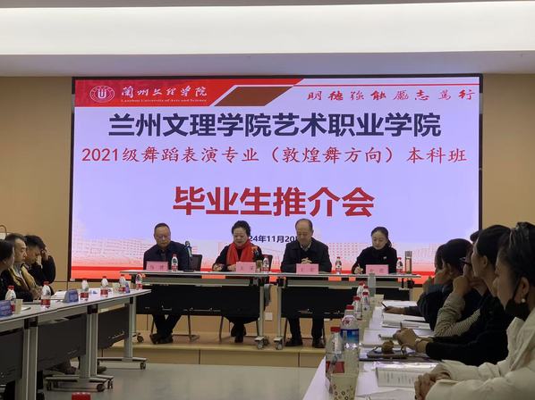 2024年11月20日上午,公司在明德楼104多功能厅召开了2025届舞蹈表演(敦煌舞方向)毕业生推介会,党总支书记王宏、经理王采、副经理马建、金亮、三十多家受邀单位嘉宾及公司2025届员工共80余人参加了推介会。