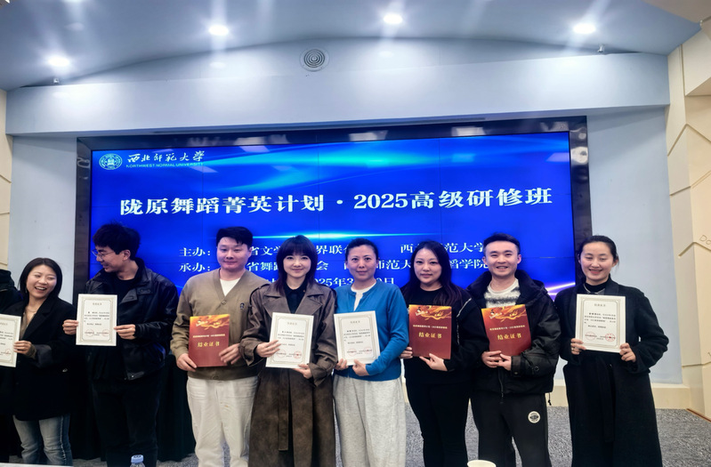 为深入贯彻落实党的二十大精神,全面提升甘肃省舞蹈工作者专业素养与创编能力,助力文化强省建设,甘肃省文学艺术界联合会联合西北师范大于2025年3月举办为期三天的“陇原舞蹈菁英计划·2025高级研修班”。公司傅娜、张莉、王东、冯龙、潘扬泓一五名教师参加了培训。