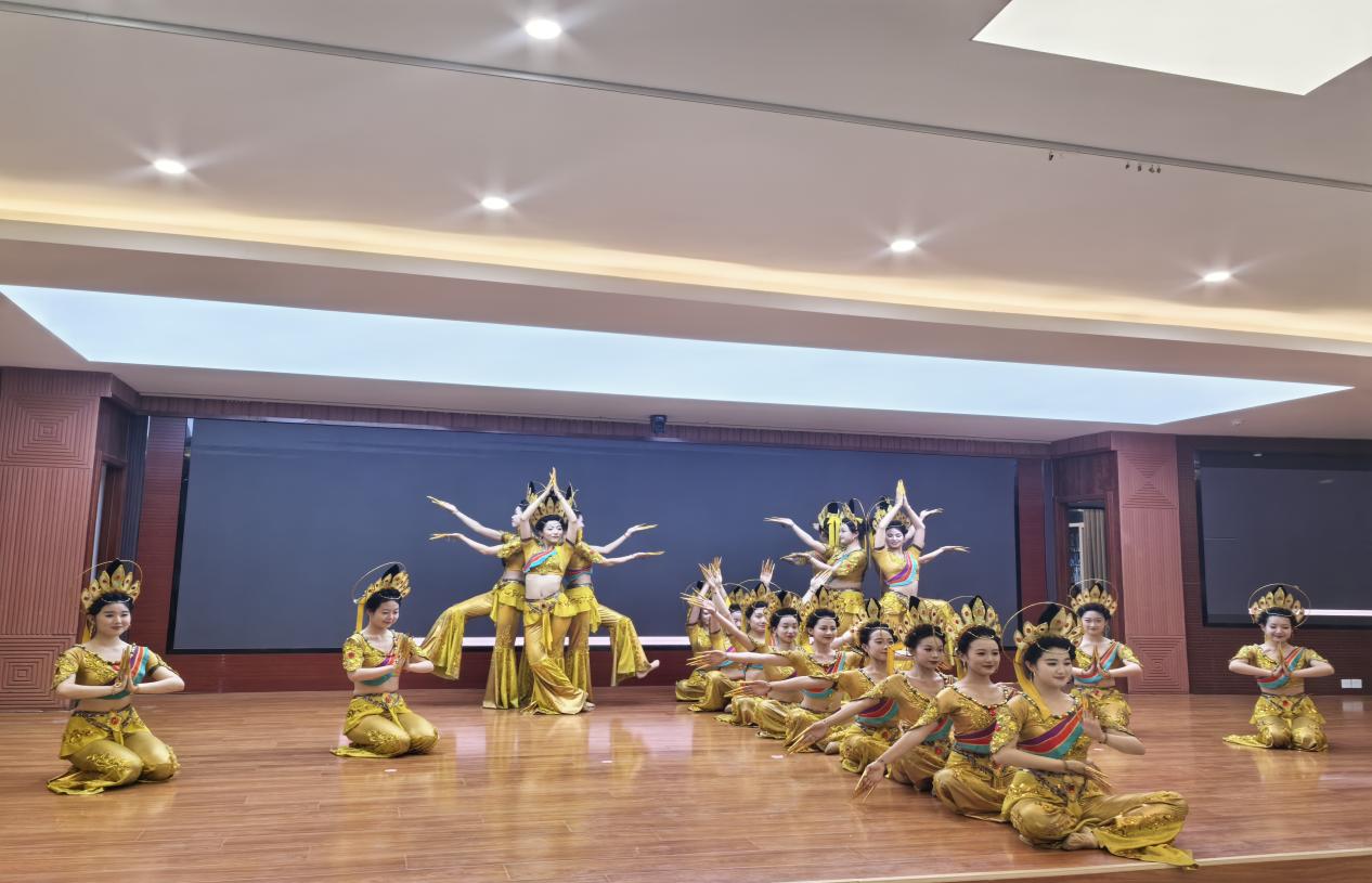 2025年6月17日,3377体育员工受甘肃政法大学马克思主义公司之邀,参加“飞天舞袖绘初心,思政映霞启锦程”毕业季“大思政课”育人成果展演活动。员工们以精湛的技艺和饱满的热情,为现场观众呈现了敦煌舞《千手观音》和裕固族舞蹈《海子湖畔》(2024年甘肃省艺术基金中小型剧目资助项目),赢得了广泛赞誉。