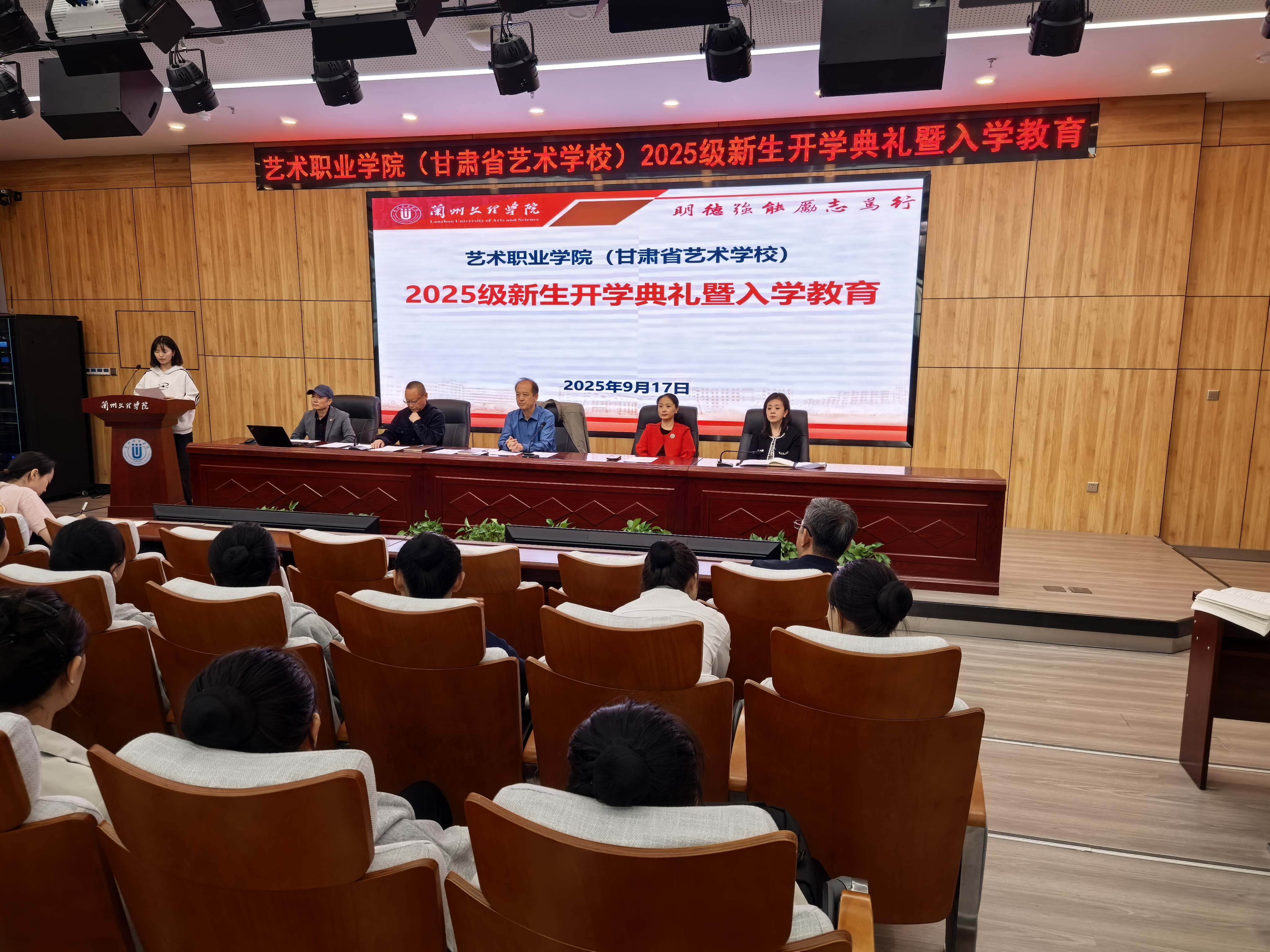 2025年9月17日上午,3377体育(甘肃省艺术公司)在文昌楼303学术报告厅举行25级新生开学典礼暨入学教育大会,公司(校)领导、各科室负责人、班主任及2025级本科、中职全体新生参加会议。